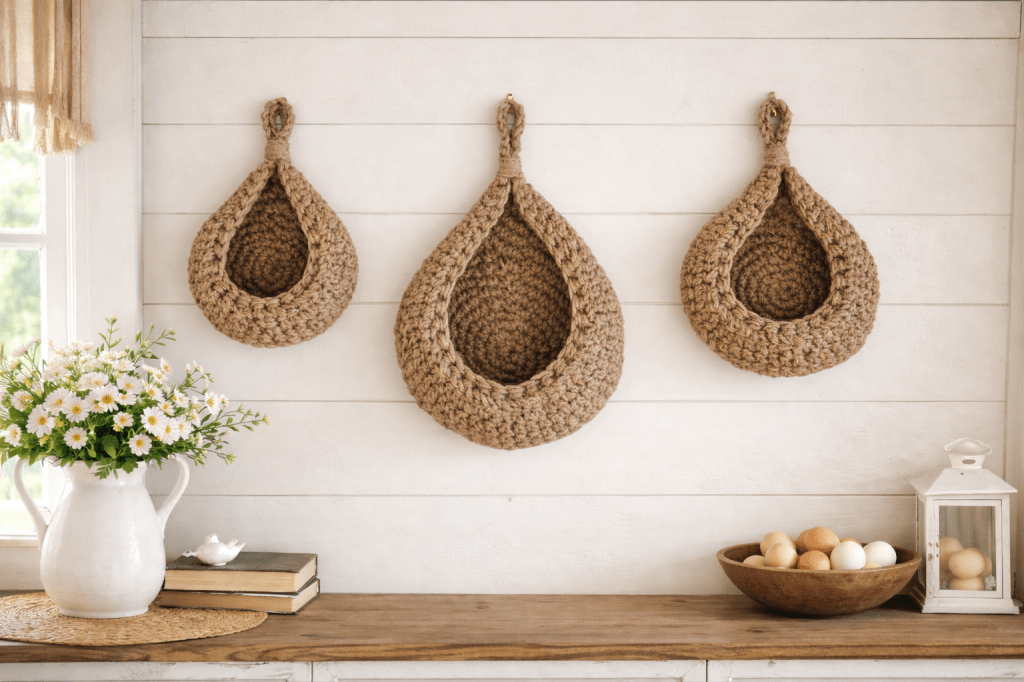 Jute baskets are a great way to organize items adding a rustic and whimsical charm to your home decor. These durable and eco-friendly baskets can be hung or placed on the counter, storing anything from kitchen ingredients like garlic, lemons, onions to toiletry items in your bathroom etc.